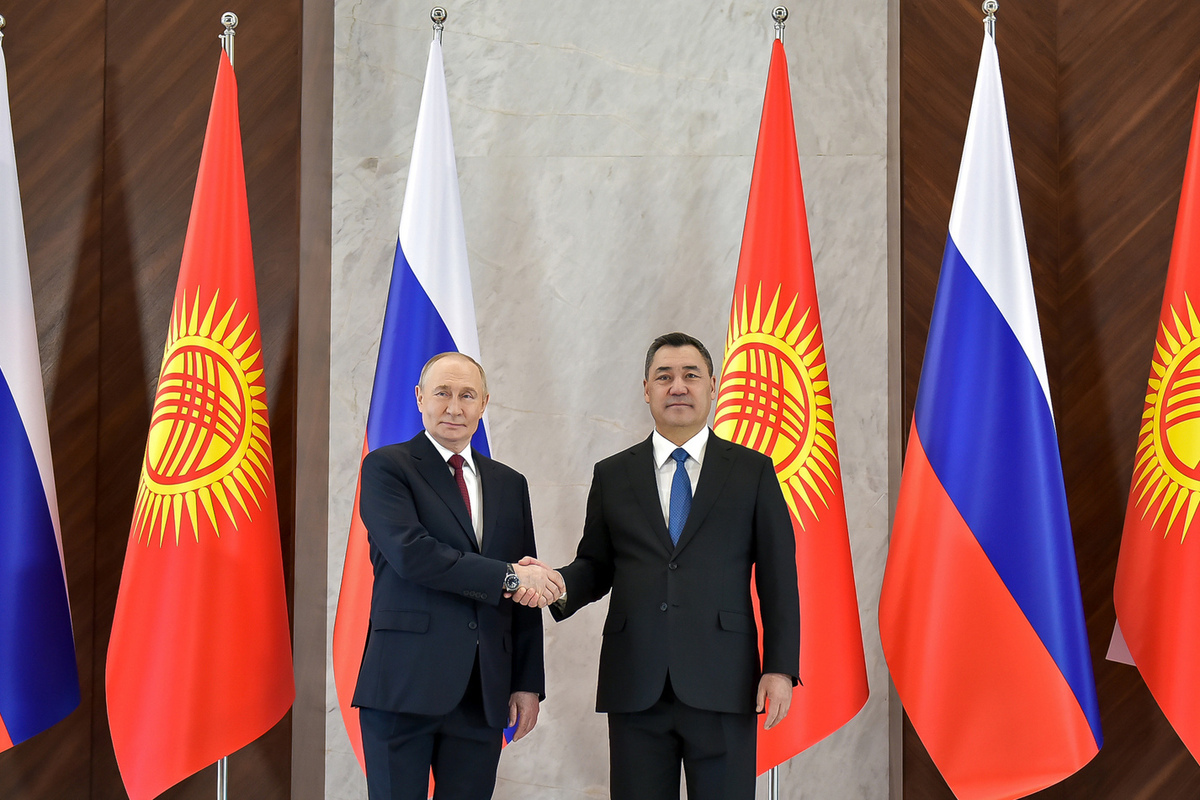 Президент Кыргызстана Садыр Жапаров выступил с заявлением для прессы по итогам переговоров с Президентом России Владимиром Путиным, находящимся в Бишкеке с государственным визитом.