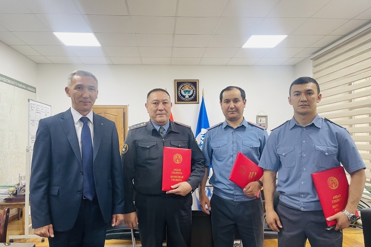 «За проявленную смелость при спасении девушки [Саргазаков] Почетными грамотами акимиата наградил Нурбекова Бектурсуна Нурбековича – оперуполномоченного отдела уголовного розыска УВД Свердловского района города Бишкек; Турсунбекова Мирлана Шайырбековича – оперуполномоченного отдела уголовного розыска УВД Свердловского района города Бишкек; Текесбаева Алымбека Шаршеновича – оперативного дежурного дежурной части СОБ УВД Свердловского района города Бишкек», – отметили в мэрии.